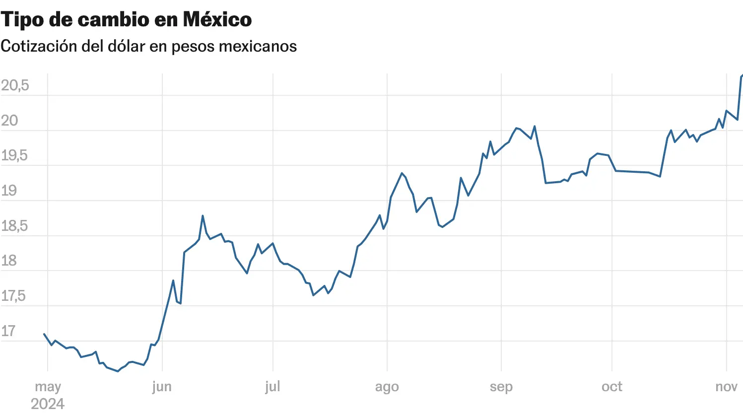 Jorge Godillo, analista de CI Banco, explicó que la reacción de los mercados sigue una lógica esperada: "La expectativa de un crecimiento económico en EE.UU., pero también con más inflación y déficit, impulsa el valor del dólar". Según Godillo, el tipo de cambio podría acercarse a las 21 unidades por dólar en caso de episodios de volatilidad adicional.